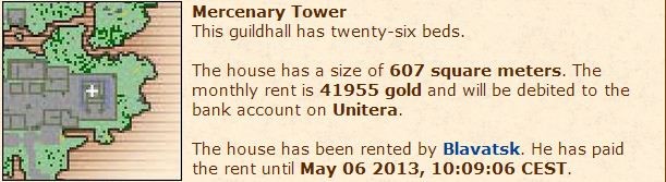 Será cobrado mensalmente do locatário, contando com o dia de início da locação do quarto; 500 GPs SQM e 2k por cama, este valor será para pagar o aluguel da Guild Halls e o que sobrar será investido em enfeites.